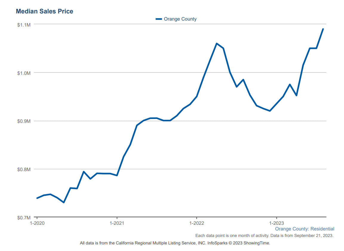The OC housing market has been showing positive trends this year. In August 2023, the overall median sales price exceeded the previous year's numbers, indicating an upward trajectory in property values.
