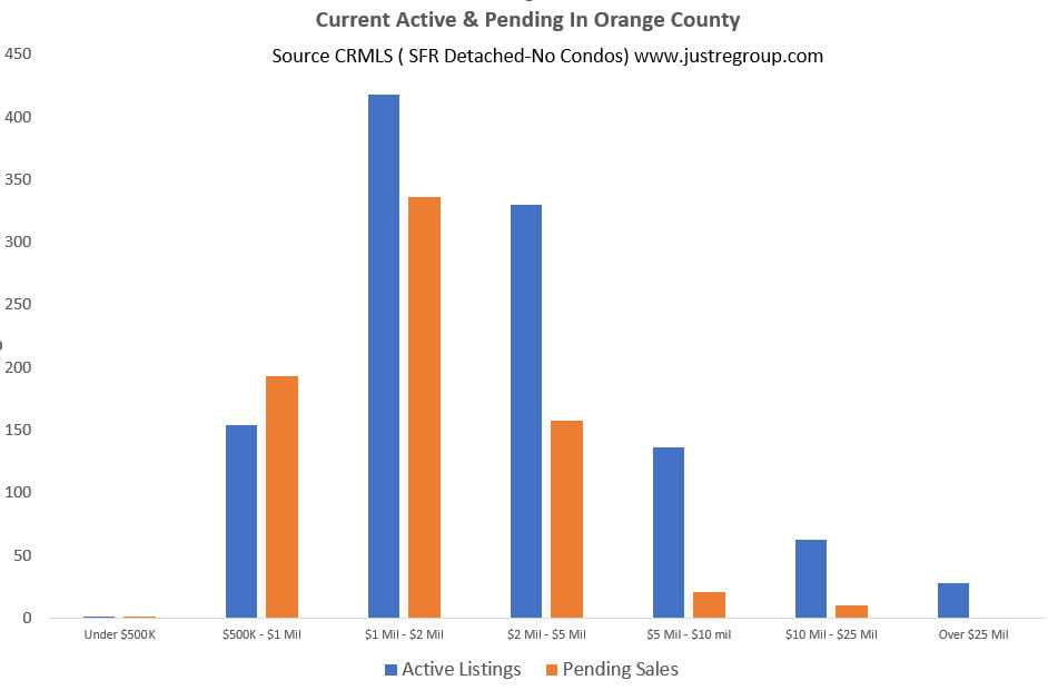 It's interesting to note the dynamics of the real estate market in Orange County by price. Note that the price range of $500,000 to $1 million is experiencing pending sales prices exceeding the list price. However, as list prices exceed $1 million, the pending sales price trend tapers down, indicating a decrease in demand or at least a shift in buyer preferences. This observation provides valuable insight into the local real estate market and the behavior of potential buyers in different price brackets. This is trend is in line with the San Clemente housing market as well.